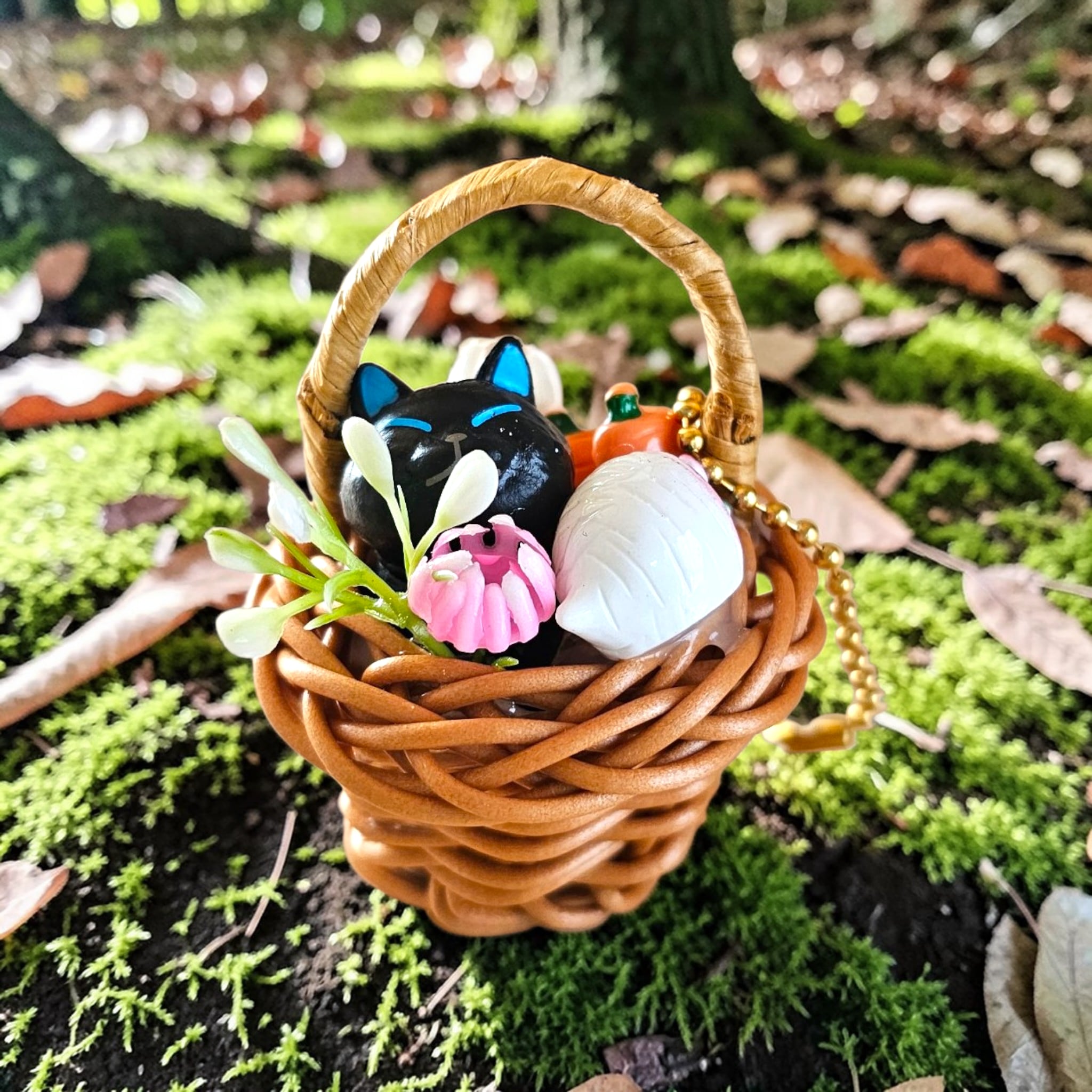 新登場のお野菜はいかがニャ?は、手のひらサイズの可愛い猫ちゃんがバスケットの中でお野菜とお花に囲まれた、愛らしいデザインです!バッグに付けるもよし、玄関に飾るもよし、どこにでも癒しの空間を演出します。この少し大きめの猫ちゃんは、見る人の心を和ませてくれること間違いなしです♪