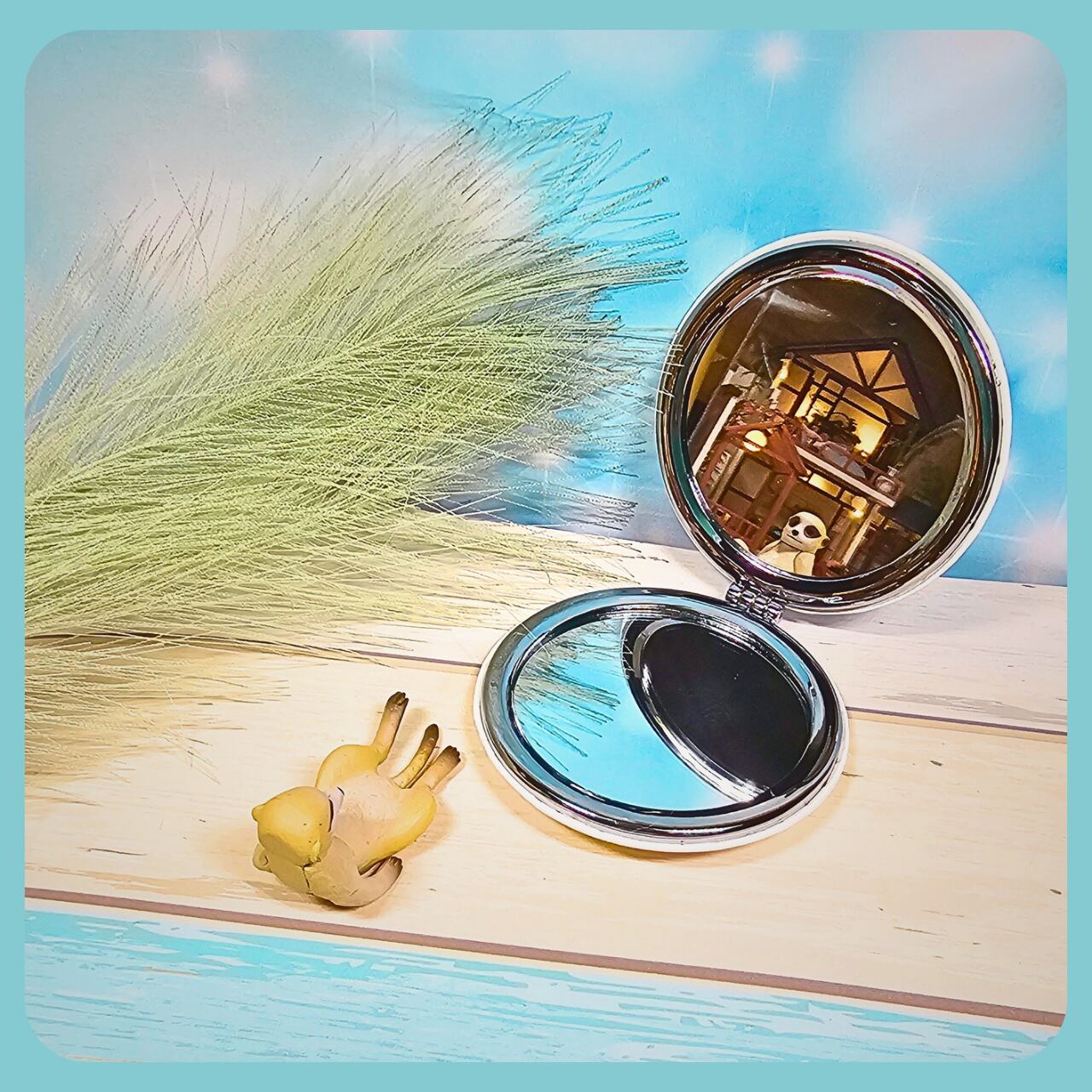 なんか飲もうか…そうや‼️…ブルーハワイ色猫たんのコンパクトミラー